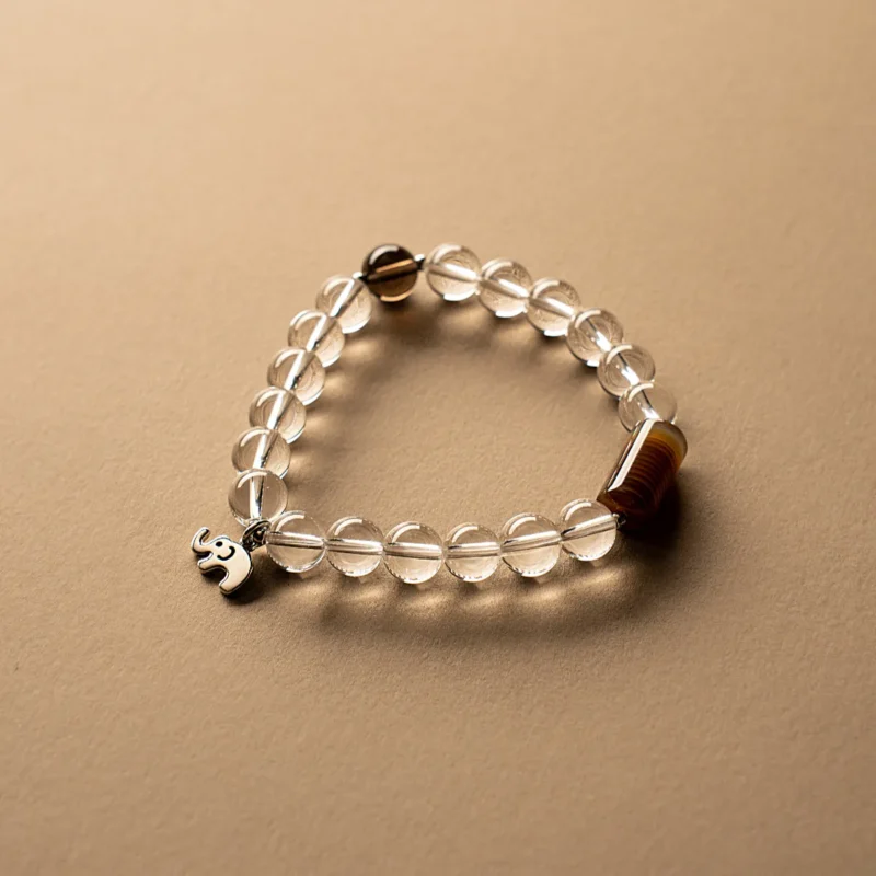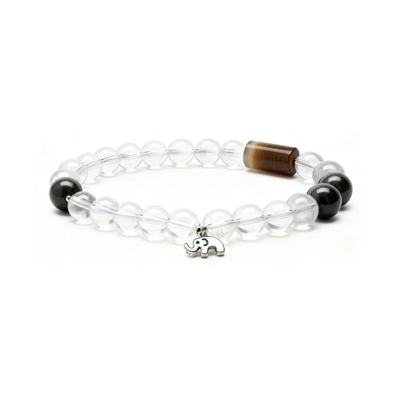 $59.90“Little Elephant Molly” White Crystal, Smoky Quartz, Agate Bracelet with a Cool Feel, 925 Silver, Natural