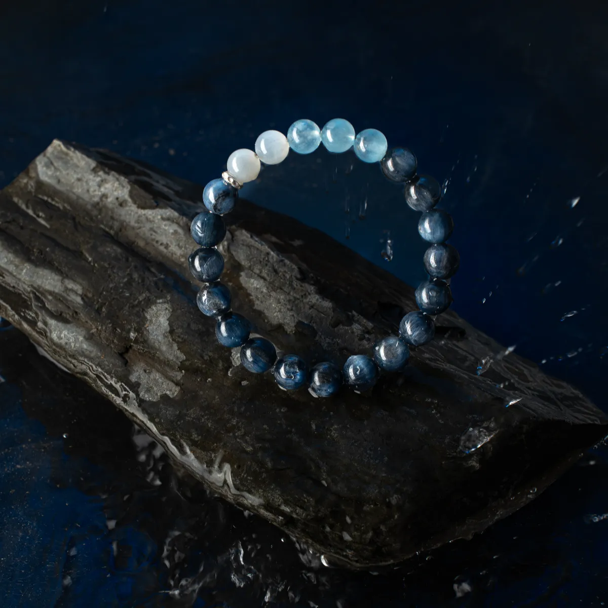 “Sumerian Blue” Kyanite, Aquamarine, and White Moonstone Crystal Bracelet – Original Water Insight