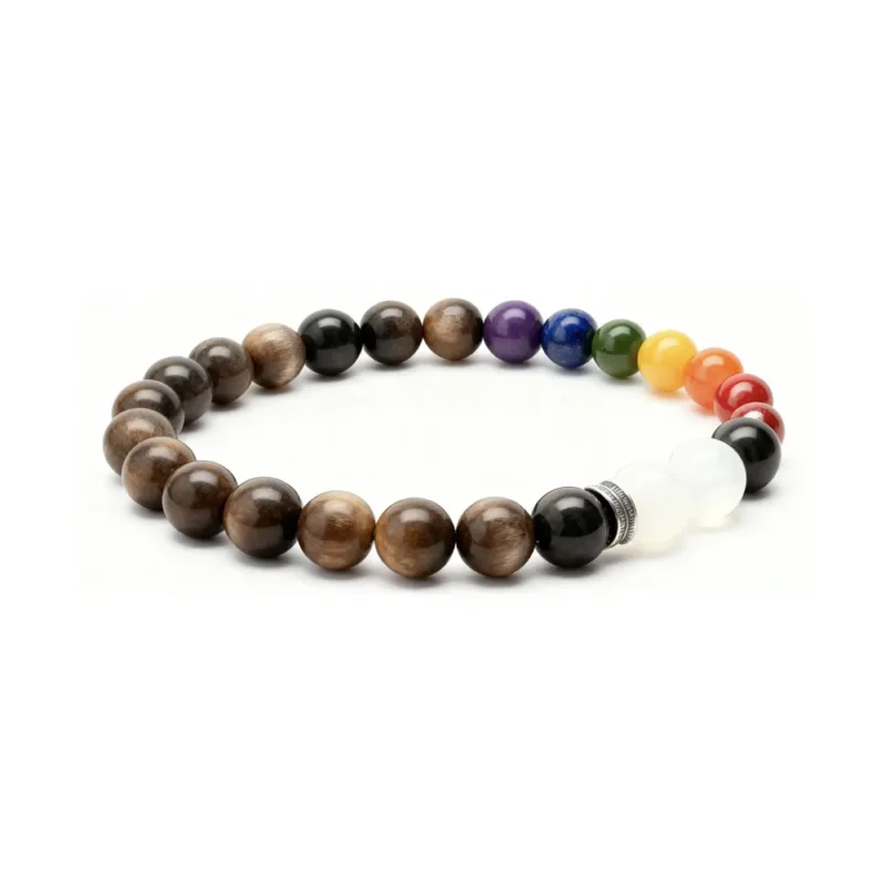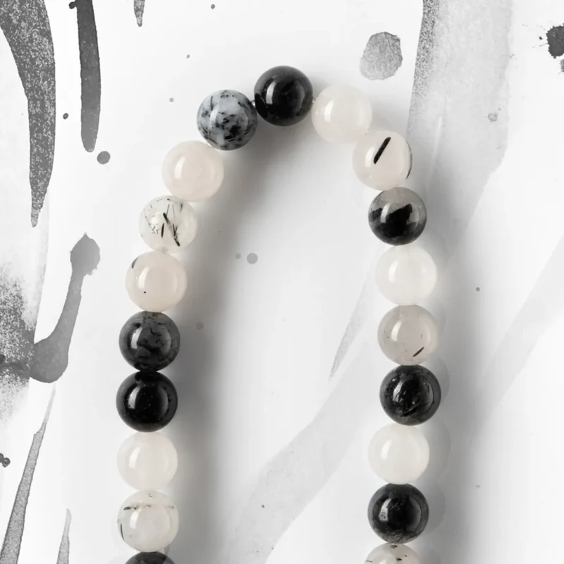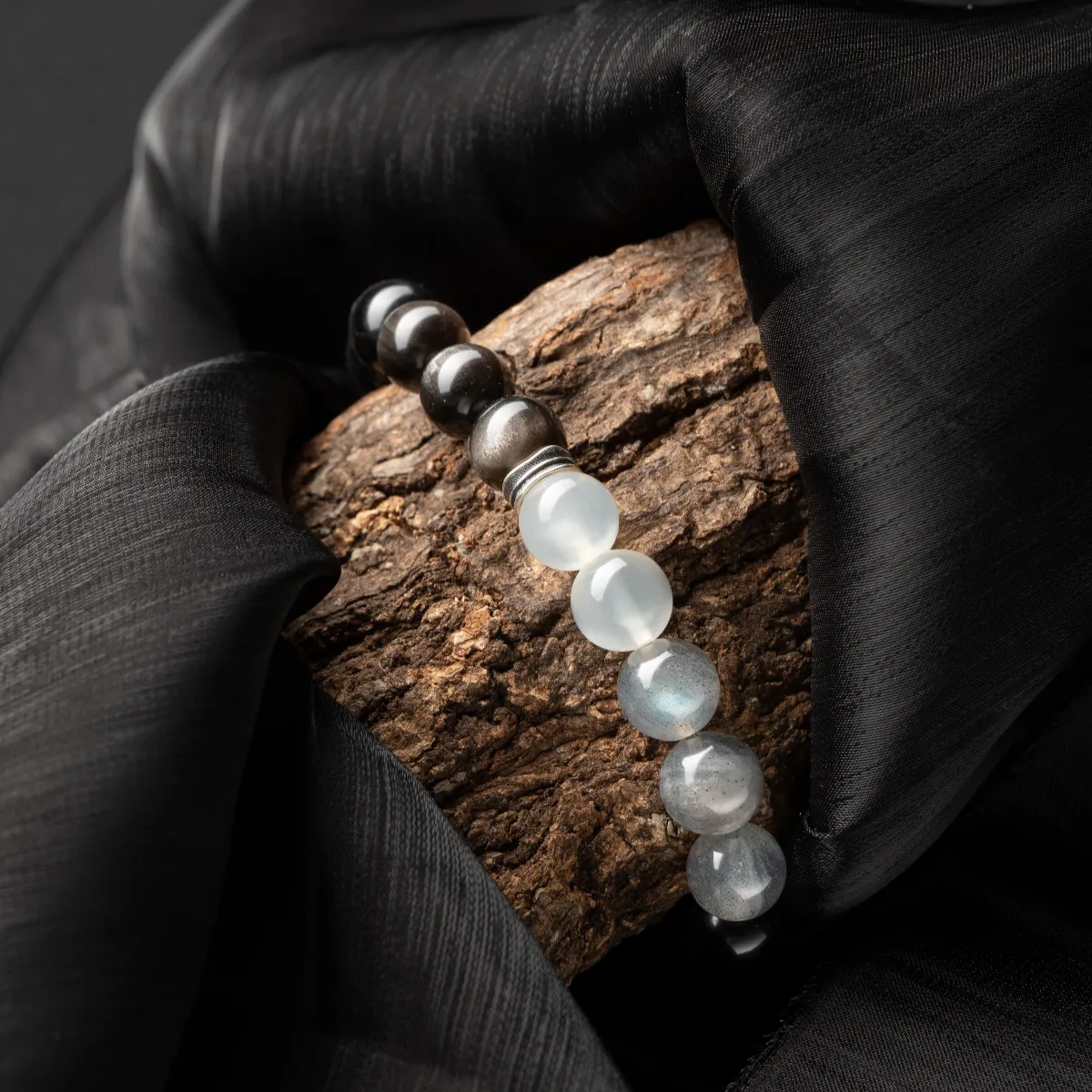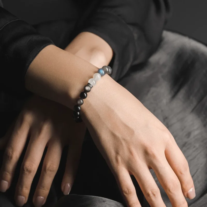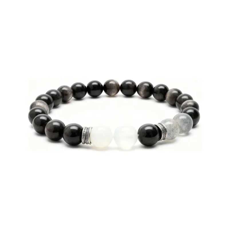 “Reynisfjara Beach” White Moonlight, Gray Moonlight, Silver Obsidian Bracelet – Cool and Refreshing Natural Crystal