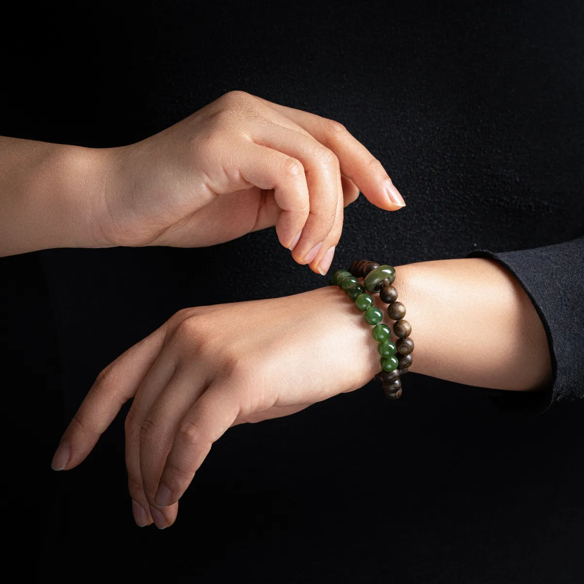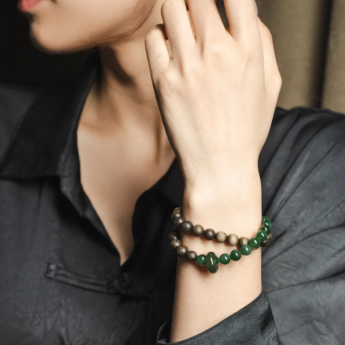 “Only This Turquoise” Hetian Jade, Ebony, Phoebe Zhennan Bracelet, Jasper, Sinkwood, Natural Yang Green
