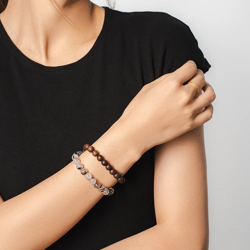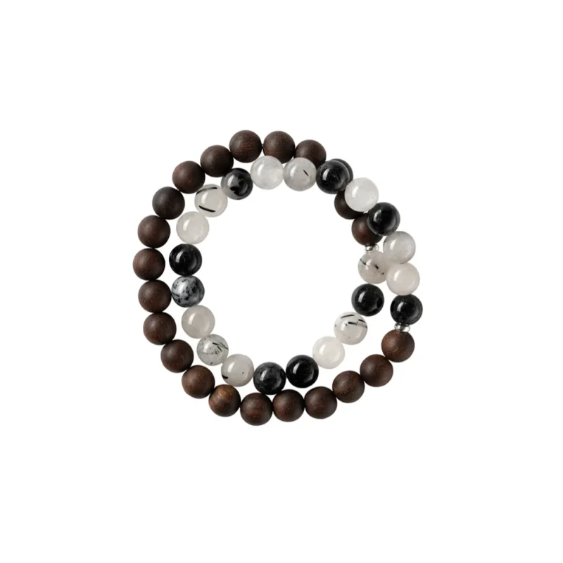 “Zangfengxing” Natural Black Rutilated Quartz Agarwood Bracelet, New Chinese Style, with the Cold and Refreshing Feeling of Ink Rain Among Clouds